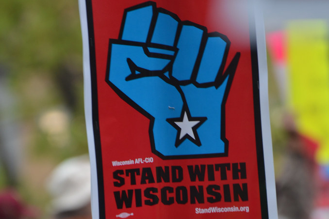 The idea that crowds of 10,000, 25,000 or 125,000 and a few times upward of 200,000, could be protesting Act 10 (crafted to eliminate public unions through what amounted to the “right to work,” without being represented by them), that the Capitol building could be peacefully occupied during the first weeks of the demonstration, that people came from near and as far as New York or Los Angeles to join us—this was a moment for democratic socialism as well. It is easy to remember the firefighters entering the Capitol, led by bagpipers, or the singing with three generations of Wisconsin families sometimes joined together in chorus. I like to remember something else. Rank and filers from unions, especially health workers and public educators, brought very, very funny homemade signs satirizing Governor Walker and the Repugs. People would laugh, cheer the signs, and look forward to different ones on the days ahead.