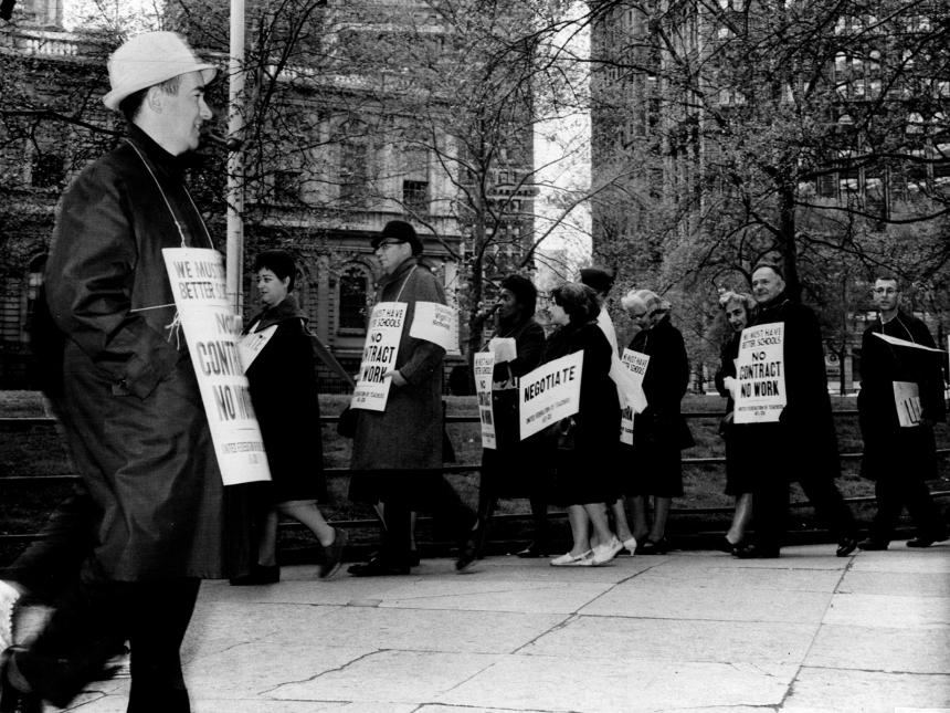 In the 1950s and 1960s, teachers, city, and state workers started to form unions without any legal right to do so—remember that the NLRA only deals with certain private sector workers. Like the union movement before the NLRA, public sector unions organized workers, made demands, and struck to win concessions from the government. A strike wave of teachers in the 1960s and 1970s won bargaining rights and transformed what were at the time professional associations like the National Education Association (NEA) into genuine unions. With no federal laws for the public sector, every state in the U.S. has its own specific framework for unions in the public sector. Often these reflect the NLRA, but some states grant few or no bargaining rights to public employees (North Carolina, Wisconsin, and Texas,) and most outlaw strikes. This has led to very uneven experiences for public employees depending on what state you live in. Overriding changes to public employment have come through the Supreme Court, as with the 2018 AFSCME vs. Janus ruling.