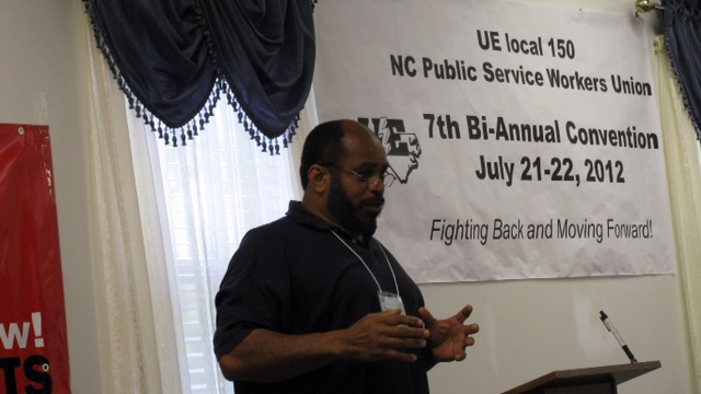 Angaza Sababu Laughinghouse, a 40 year plus veteran “social justice trade unionist”, Black freedom fighter, labor and community organizer, shows no signs of retiring. He is presently serving workers as president of the North Carolina Public Service Workers Union, United Electrical ,Machine & Radio (U.E.) Local 150. As an organizer, activist and advocate Angazahas been fighting for the workers’ rights for more than four decades.