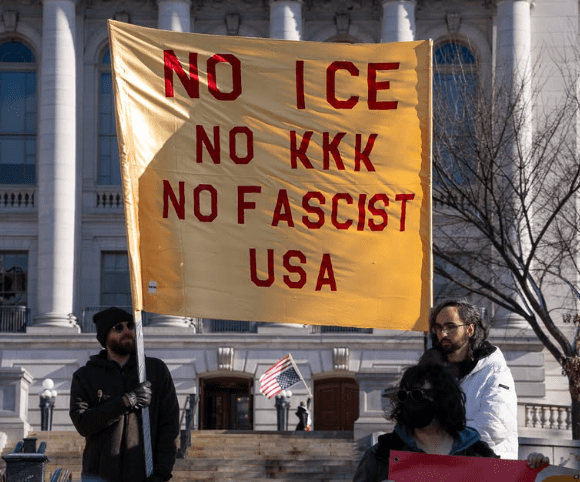 - Members participated further in an Ice Out rally on January 25th in response to the killing of Alex Pretti. Member Sam D. gave a speech – click here for a link with captions.