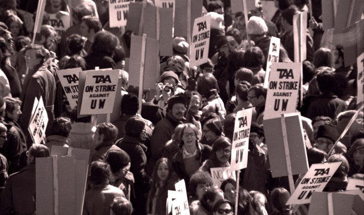 by Jon Isaac March 16, 1970: Teaching assistants and other graduate workers at the University of Wisconsin–Madison stood outside campus buildings chanting and holding signs, where just a week earlier they had been teaching classes. Some brought their dogs, others … Continue reading Shut it Down: The 1970 TAA Strike